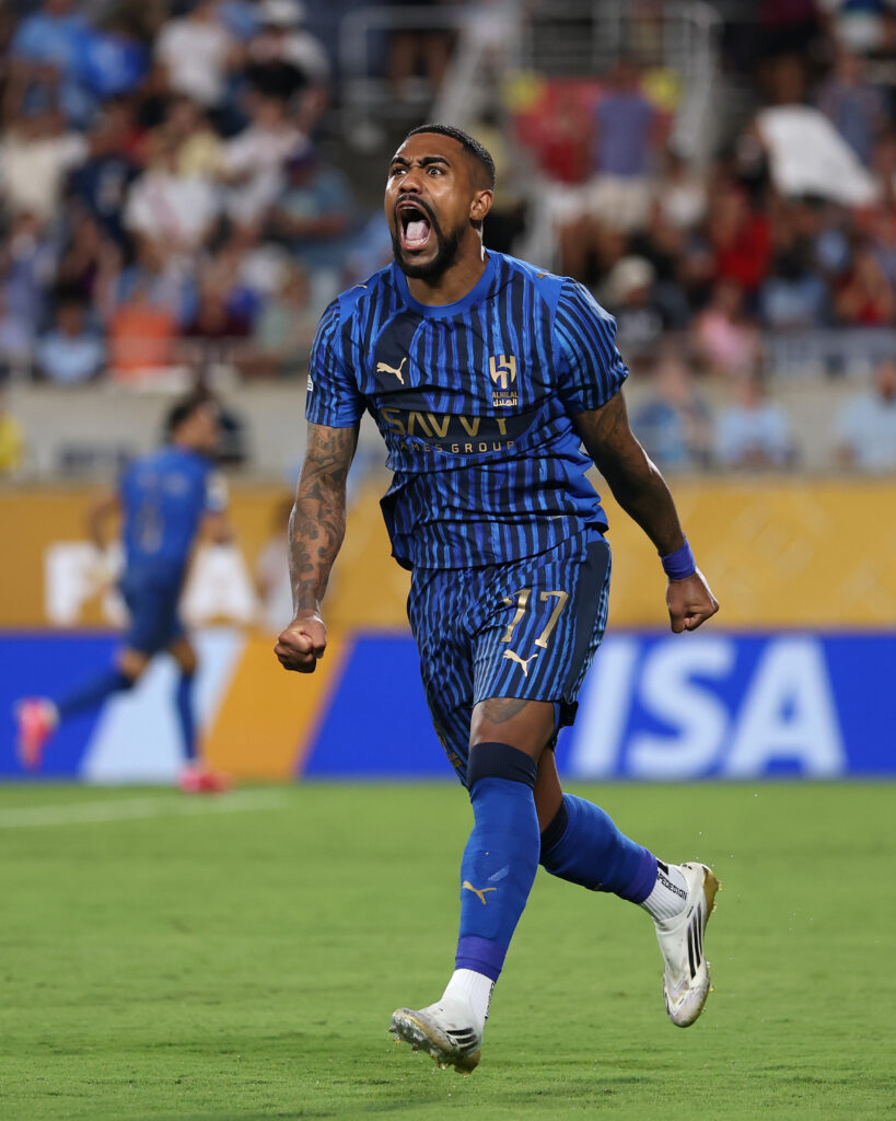Malcom #77 del Al Hilal celebra el gol de Marcos Leonardo #11 durante el partido del Campeonato Mundial de Clubes de la FIFA 20025 entre Manchester City y Al-Hilal en el Camping World Stadium el 30 de Junio 2025 en Orlando, Florida. (Photo by Justin Setterfield – FIFA/FIFA via Getty Images)