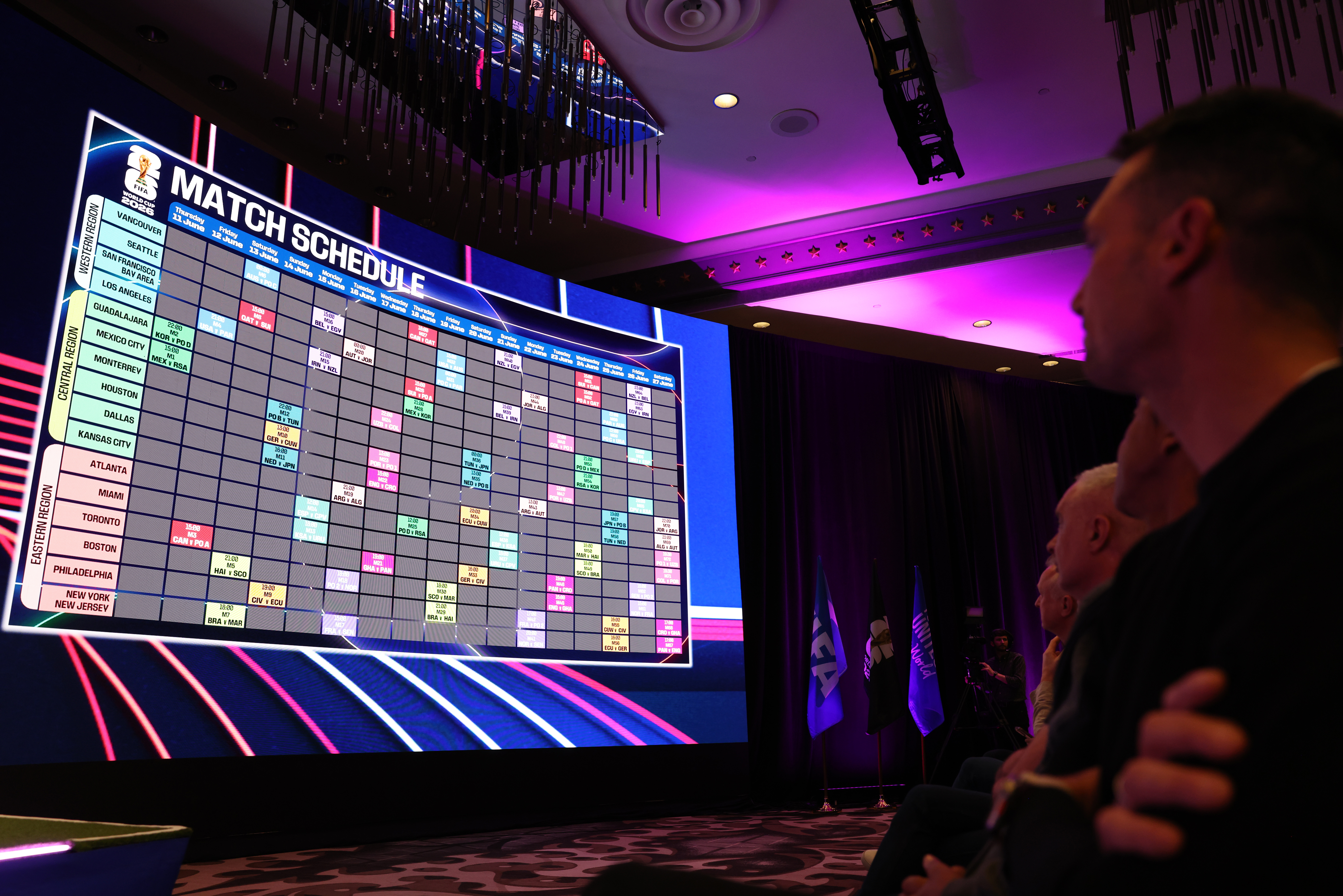 Ante un público en vivo de aproximadamente 2000 invitados internacionales presentes en el Centro John F. Kennedy para las Artes Escénicas, y con una audiencia de millones de espectadores de todo el mundo, se definieron los doce grupos de cuatro equipos cada uno que se enfrentarán en la 23.ª edición del torneo. Con casi dos millones de entradas ya vendidas, la expectación no deja de crecer en las tres naciones y en las 16 ciudades anfitrionas.